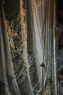 Some of the looms make their patterns using punch cards, a brocade method still used in Lyon, France, as well:
